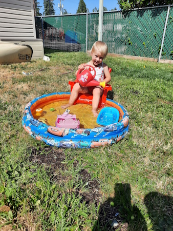 It is another pool afternoon. It is my turn to be in the pool with Natasha.