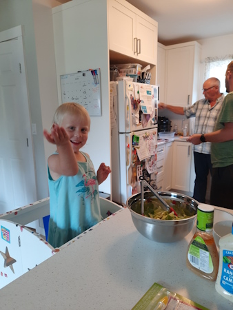 We are getting back to our "supper" routine. We cook Monday to Thursday. They cook from Friday to Sunday.