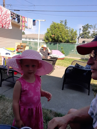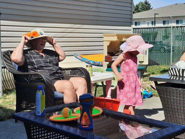 After a good time in the pool, Michele brought the hats she bought a while back. They are lady's hats.