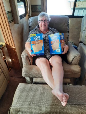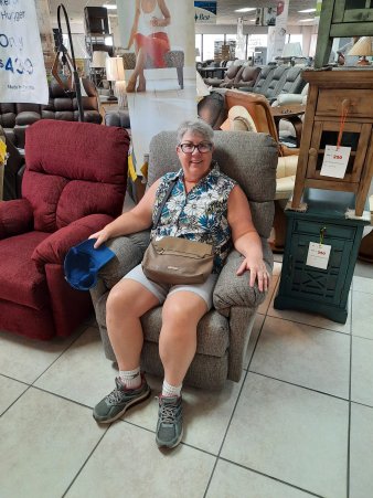 On the way back, we stopped at the furniture store. We are looking at changing our two recliners in the 5th wheel.