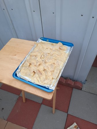 I did the finishing touch on the wooden covers. We did not move them on the roof yet because of the wind.
