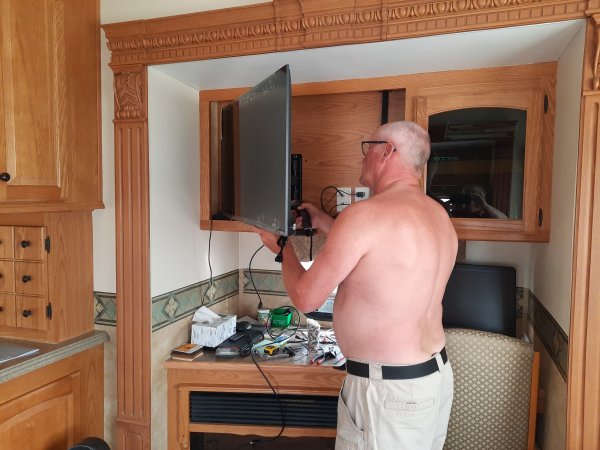 one hour and a half. The TV support arm does not fit the new TV. I am