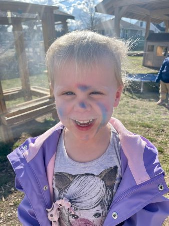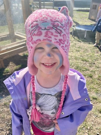 Natasha had another little girl in daycare do some make-up with sidewalk chalk. Pretty cute!