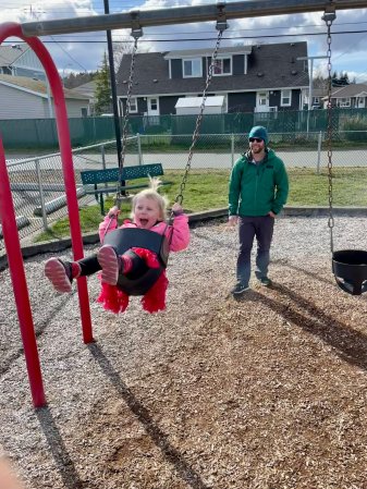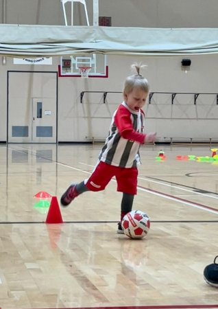 Natasha is at soccer practice. She wanted a "tree" on her head.