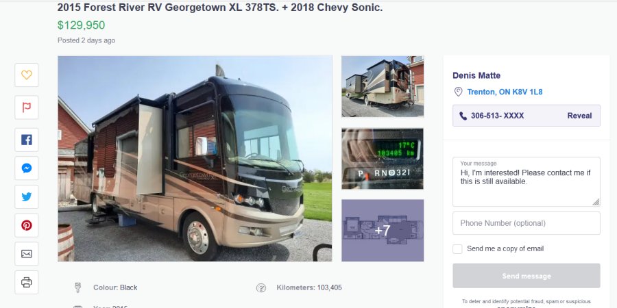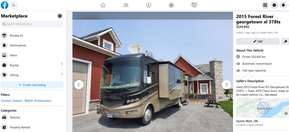 I also put up ads to sell the MH and the car. The ads are now live on Market Place