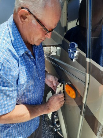 I am helping Jan reorganize the storage compound to make room for the boat trailers.