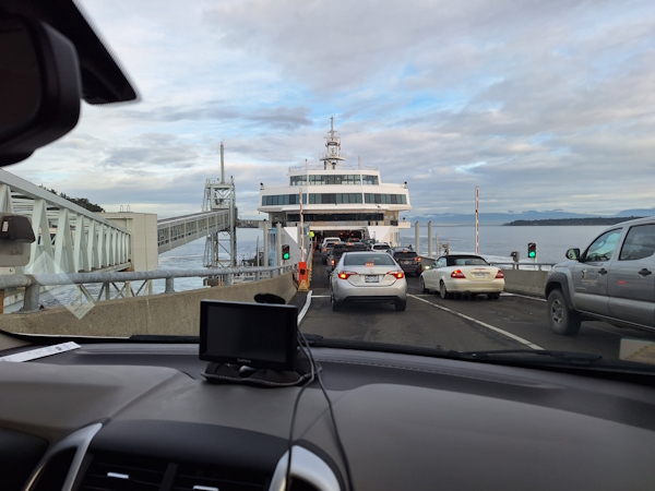 the road by 8 am. We are on our way to Nanaimo and get on the ferry