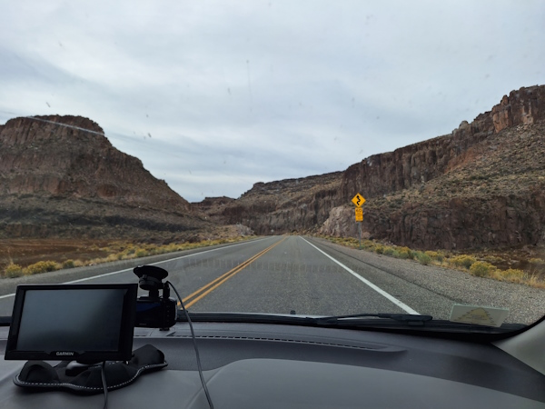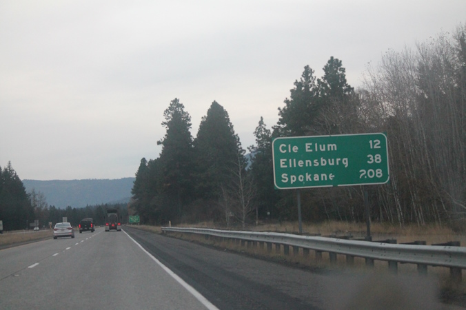 We left Ellensburg under a rainy sky and it did not let up until 2 o'clock in the afternoon. We turn southwest on I-82.