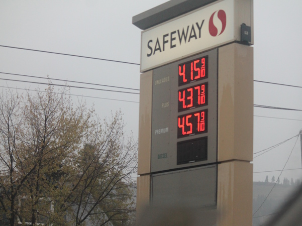 We made two stops for gas, this is one of them. the cost is bout $1.45 per litre and the other was $1.33 per litre.