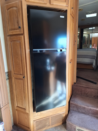 Since our 5th wheel will not be moving for many years to come, maybe never, we do not attach the new fridge to the structure.