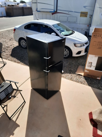 Dennis offered to help me replace the 5th wheel fridge since he did it last winter.