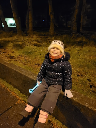 Natasha is ready for the Remembrance Day parade with Daddy.