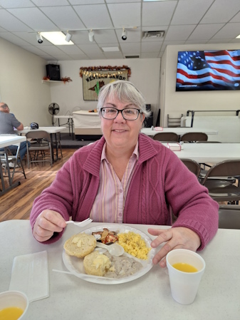 Gaétan was selling the 50/50 ticket. Usually, I sell them too. But being Veterans Day, Michele and I enjoyed the meal.