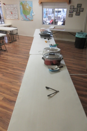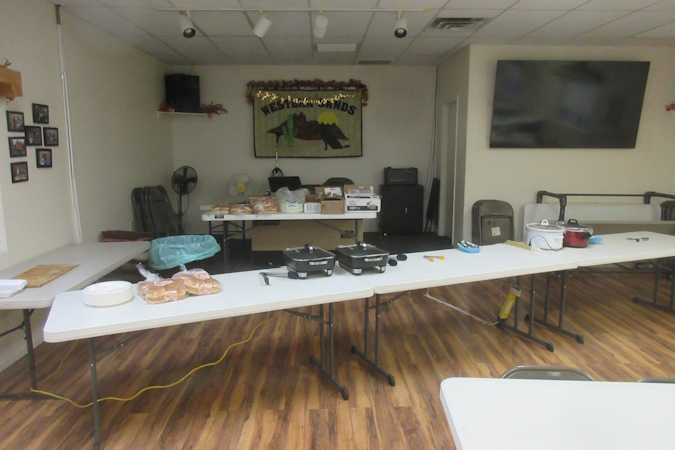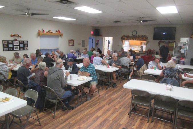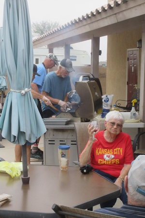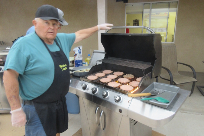 It is hamburger night at the clubhouse tonight. The cooking crew is ready.