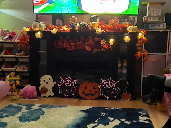 After a good nap with Daddy, Natasha and Jeremy placed the Halloween decorations in the house.