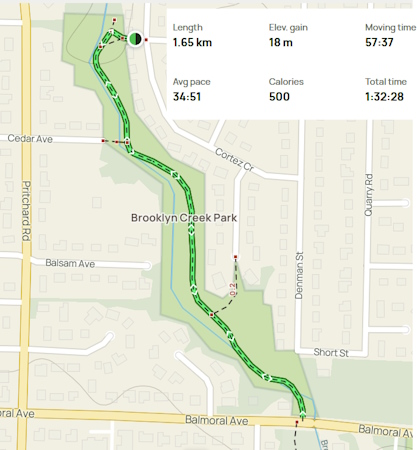 Natasha and I are hiking at the Brooklyn Creek Park trail.