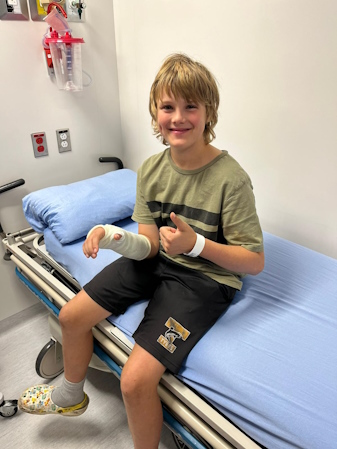 We received a photo from Gabriel. He was at the hospital because of a possibly broken bone in his hand.