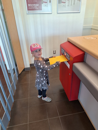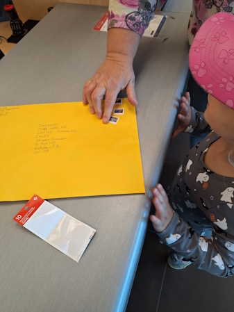 She is mailing a BIG letter to her mom. I have to say, the lady at the