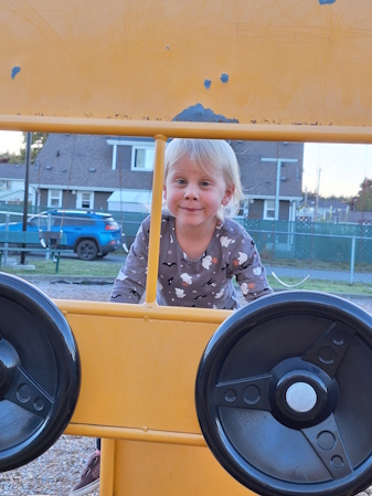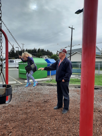 After supper, if time permits, Natasha and grand-maman go to the playground.