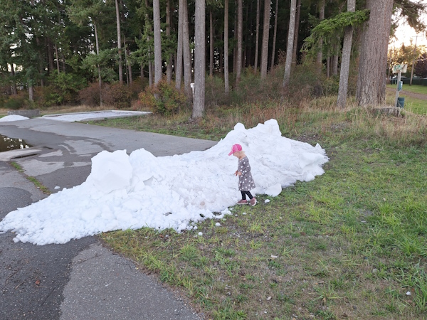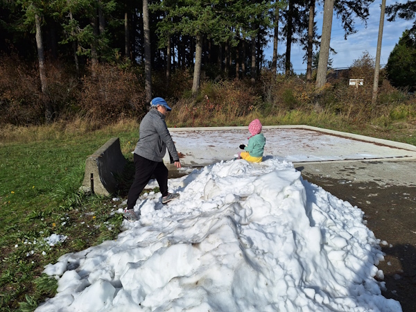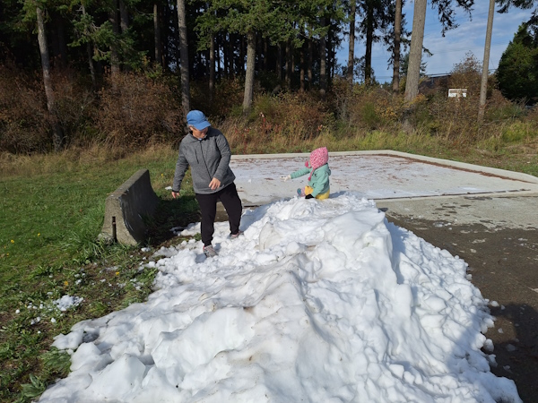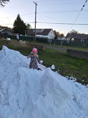 For a three years old little girl, she can throw a snowball pretty accurately.