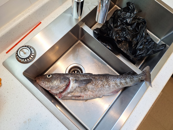 Jeremy went fishing this morning. He caught his first cod. It is 30 inches long.