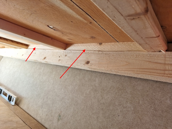 The piece of lumber at the head of the bed should have been a 2X2, but they put two pieces of 1X2 screwed together.
