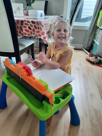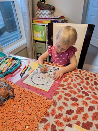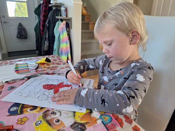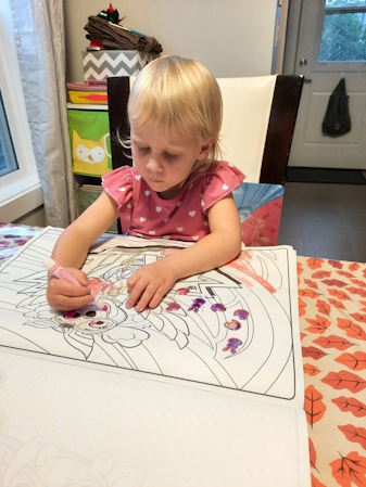 She was back to colouring when we got home. This time, she is colouring in the BIG colouring book.