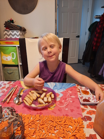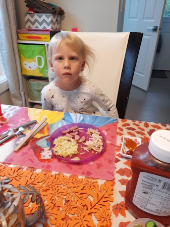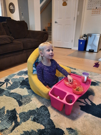 Natasha informed us that tonight was a special night. She wanted to have supper in front of the TV. Sure, we said.