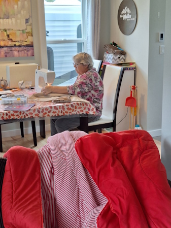 Meanwhile, Michele does some sewing with our new (to us) Kenmore sewing machine.
