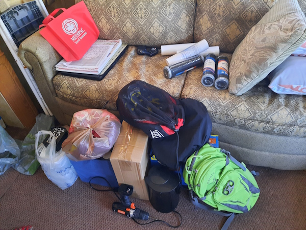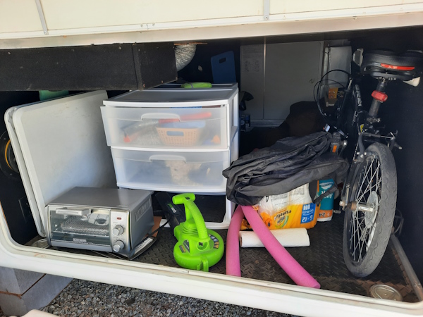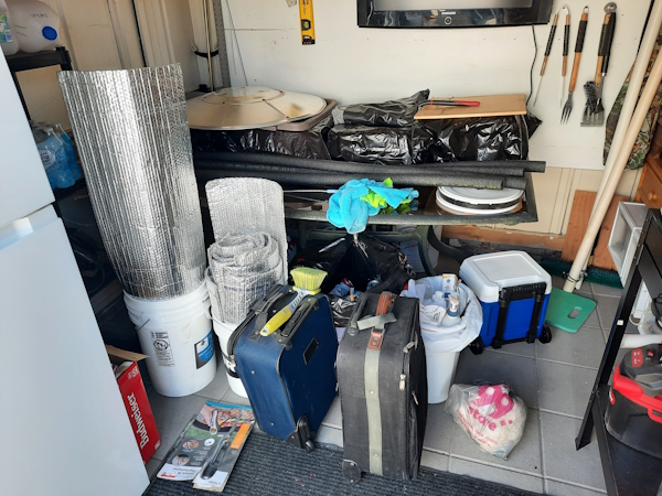 Before it gets too hot, I place the stuff that stays here in the shed and the basement of the trailer.
