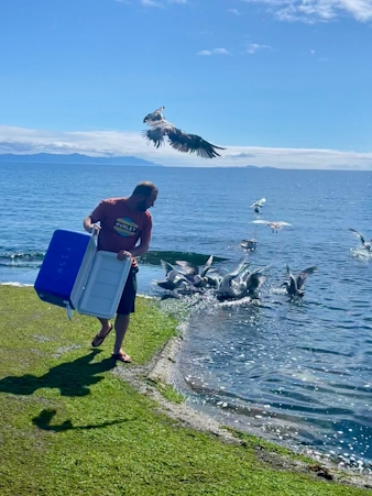 The fish guts go to Point Holmes, at the water's edge. The seagulls love it.