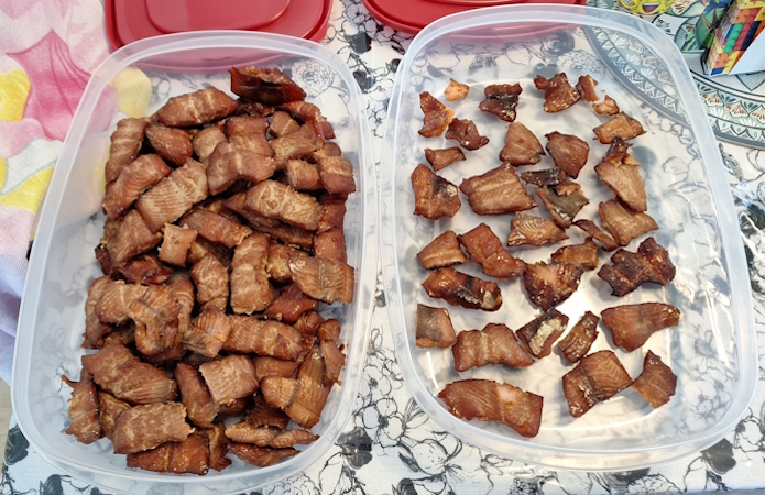 This is what seven pink salmon look like when turned into smoked salmon.