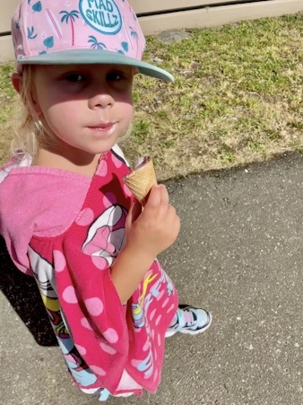 This is one happy but tired little girl.