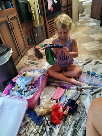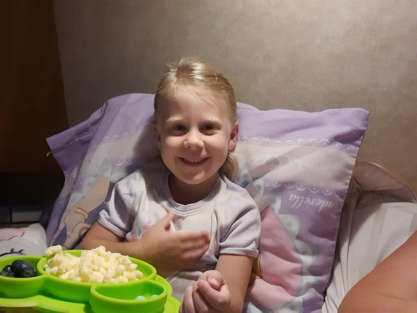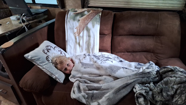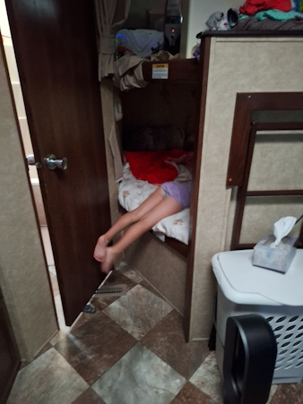 Natasha has a lazy morning in the trailer.