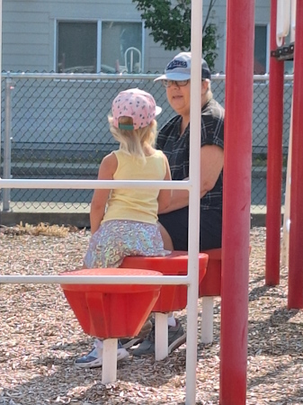 Grand-maman goes to the playground with Natasha.