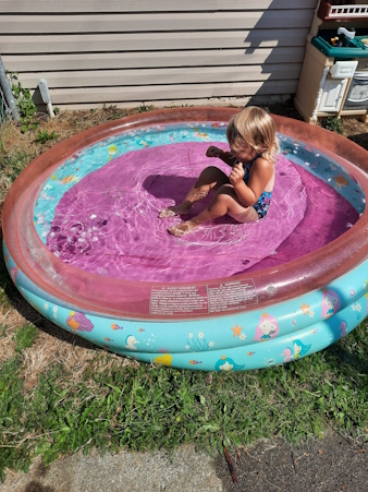 Once home, the fun continues with her pool.