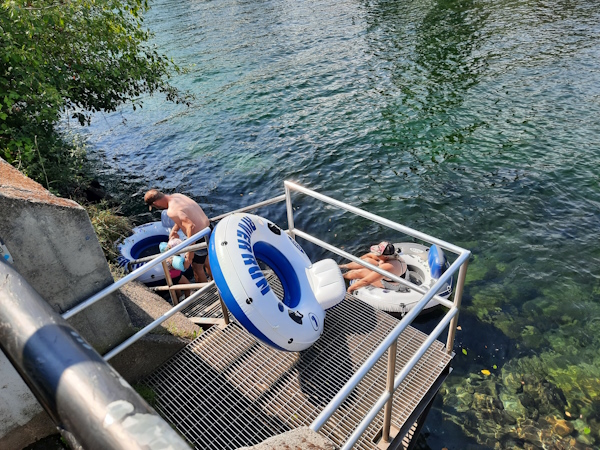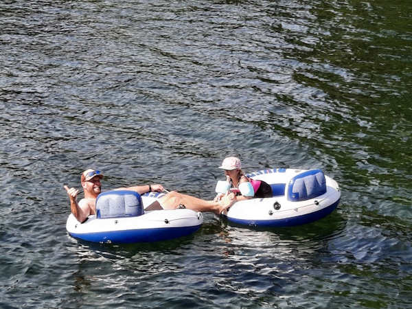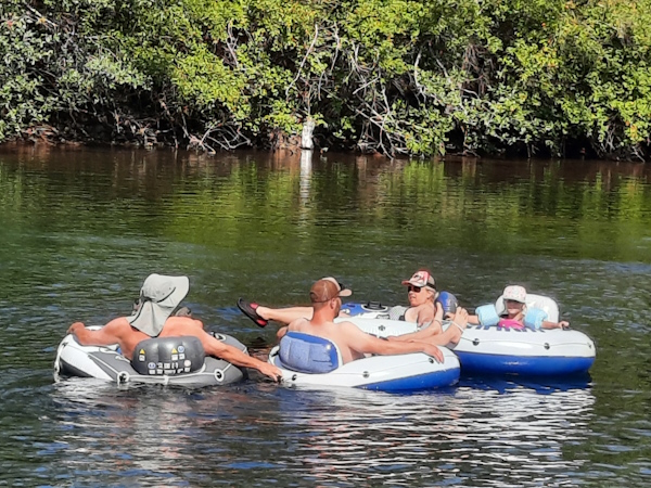 We are going down the short stretch of the river because it is Natasha's first time on the river in a tube.