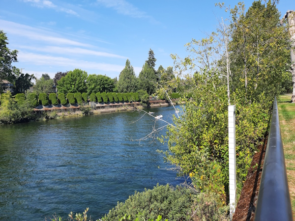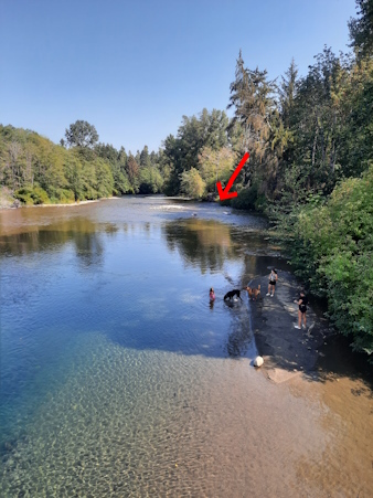 Here we are at the base of the bridge. You can see the small rapids down the river.