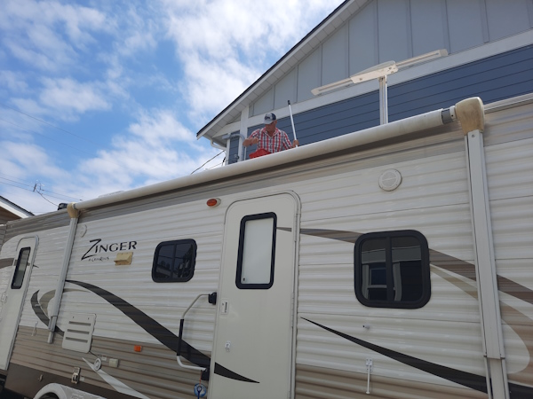 I managed to wash the roof, awning, right side, back, and rear before supper.