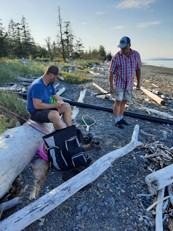 I am fishing with Jeremy on the Campbell River. We are fishing for pink salmon.