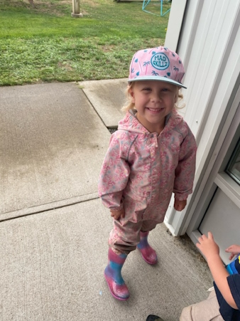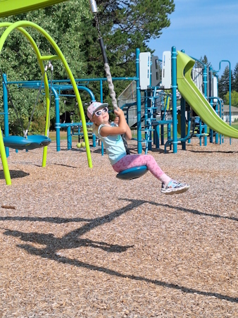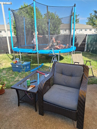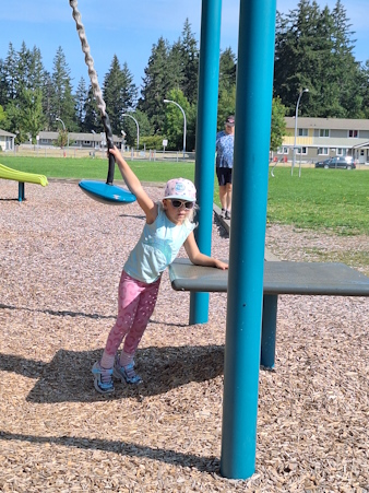 When she jumps on the trampoline, her hair ends up like this. It is so funny looking.