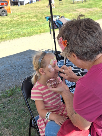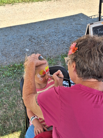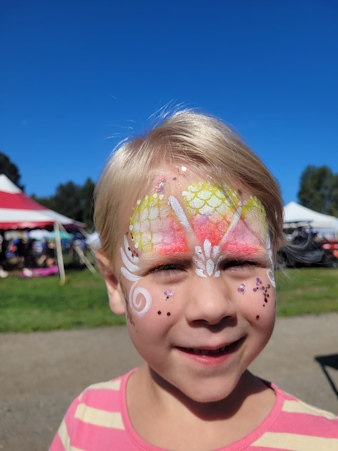 The lady doing the painting is very good with kids. Natasha chose a mermaid for her painting.