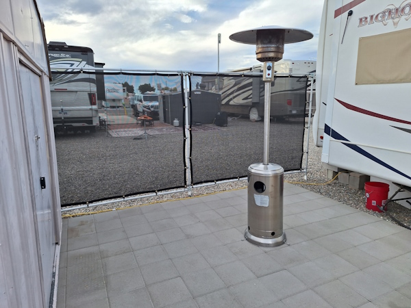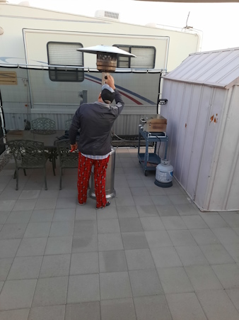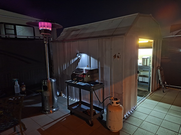 Because it is cold, I use our patio heater to keep me warm while cooking.