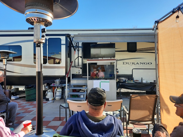 A few friends were invited to Terry and Darlene's place to watch the game.