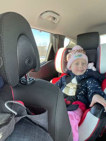 It is Natasha's first-ever airplane ride. She even got to visit the cockpit.