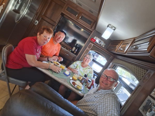 We start with donuts and coffee at the clubhouse. It is offered by the campground.