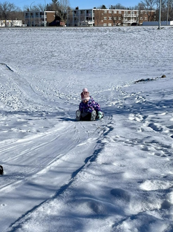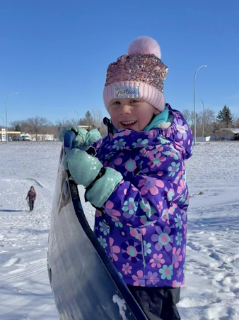 Natasha is having a great time in the snow while visiting her grandparents in Regina.