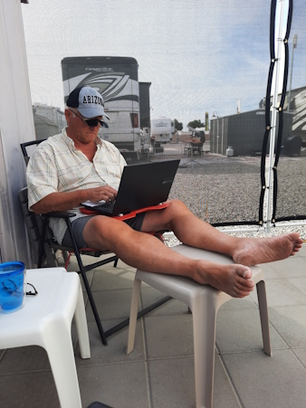 A few hours after I am done, our friend Jan calls me to see if I can store a large parcel until he returns to Yuma. Sure!