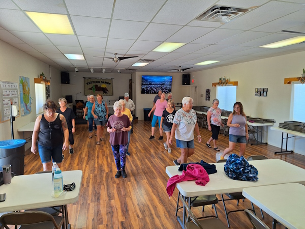 We had line dancing on Tuesday. We also had chair exercises and Bingo in the evening.