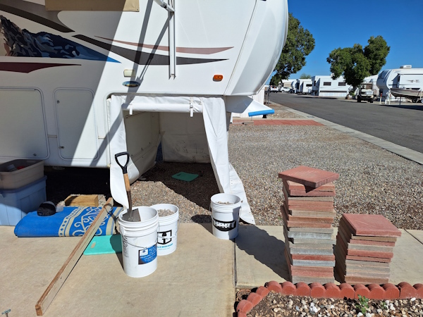 I found some used pavers for cheap. I am using them under the gooseneck of the 5th wheel.